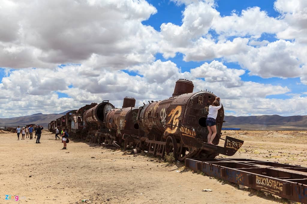 “Nghĩa địa xe lửa”, cách thị trấn khoảng 3 km. Nơi đây từng là nhà ga xe lửa lớn nhất Bolivia, nhưng giờ đã trở thành một khu phế liệu khổng lồ. Khu vực này được xây dựng vào cuối thế kỷ 19. Khi đó, giới lãnh đạo tin rằng, họ sẽ tạo ra được một hệ thống giao thông hiện đại giúp phát triển quốc gia. Tuy nhiên, người dân bản địa ở đây lại xem tàu hỏa là một sự xâm lăng, nên thường xuyên phá hoại chúng. Về sau này, vào những năm 1940, khi các tài nguyên đã cạn kiệt và nền công nghiệp khai thác khoáng sản sụp đổ, những đoàn tàu trở nên vô dụng và bị bỏ mặc cho thời gian tàn phá.