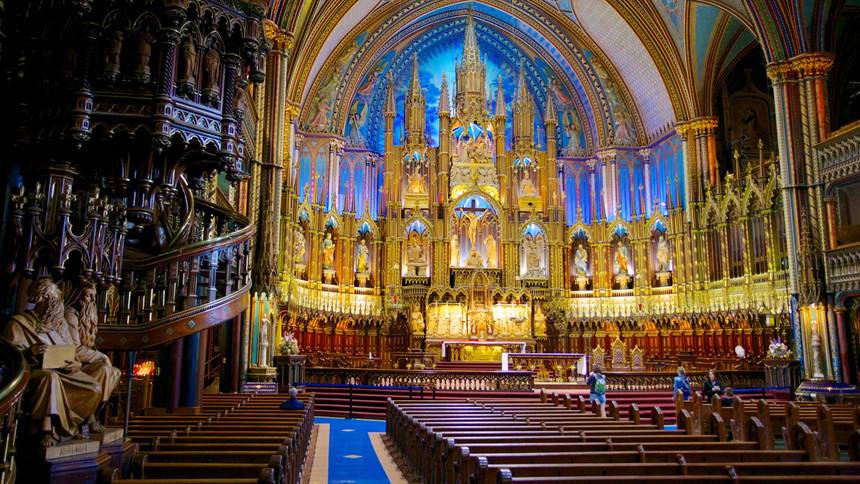 Không chỉ thiên nhiên và con người Canada, những công trình nổi tiếng tại các thành phố cũng khiến du khách say đắm. Điển hình, khi đến thành phố Montreal, bạn hãy ghé thăm Nhà thờ Notre Dame. Đây là một trong những nhà thờ đẹp nhất Canada và là nơi diễn ra nhiều sự kiện trọng đại về chính trị và tôn giáo. Ảnh: Expedia.
