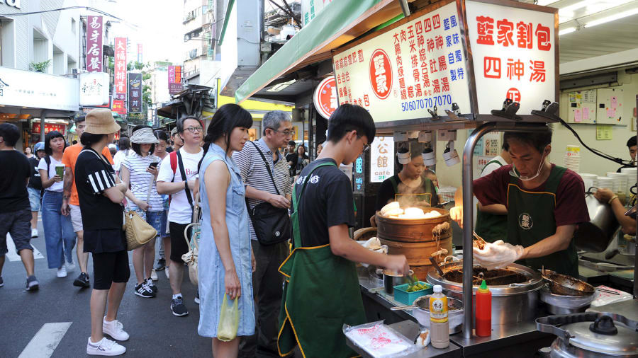 Hàng guabao nổi tiếng nhất DAI_LOAN là Lan Jia Guabao ở đường Roosevelt (Đài Bắc). Đến đây, bạn sẽ thấy khách xếp hàng dài chờ tới lượt mua. Đầu bếp ở đây thay đổi công thức truyền thống bằng cách dầm nhỏ thịt sau khi hầm nguyên tảng. Ảnh: CNN.