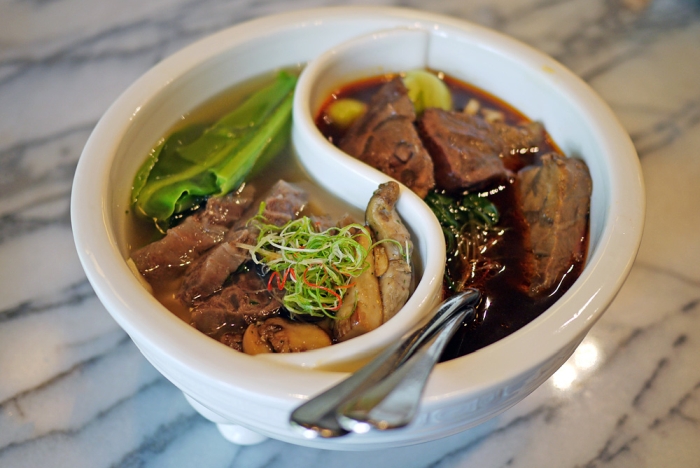 Món ngon nhất tại đây là Mì "hai vị" (356.000 đồng/ tô), kết hợp 2 loại nước dùng phổ biến nhất: nước dùng cay và nước dùng trong. Mì được phục vụ trong tô âm dương.