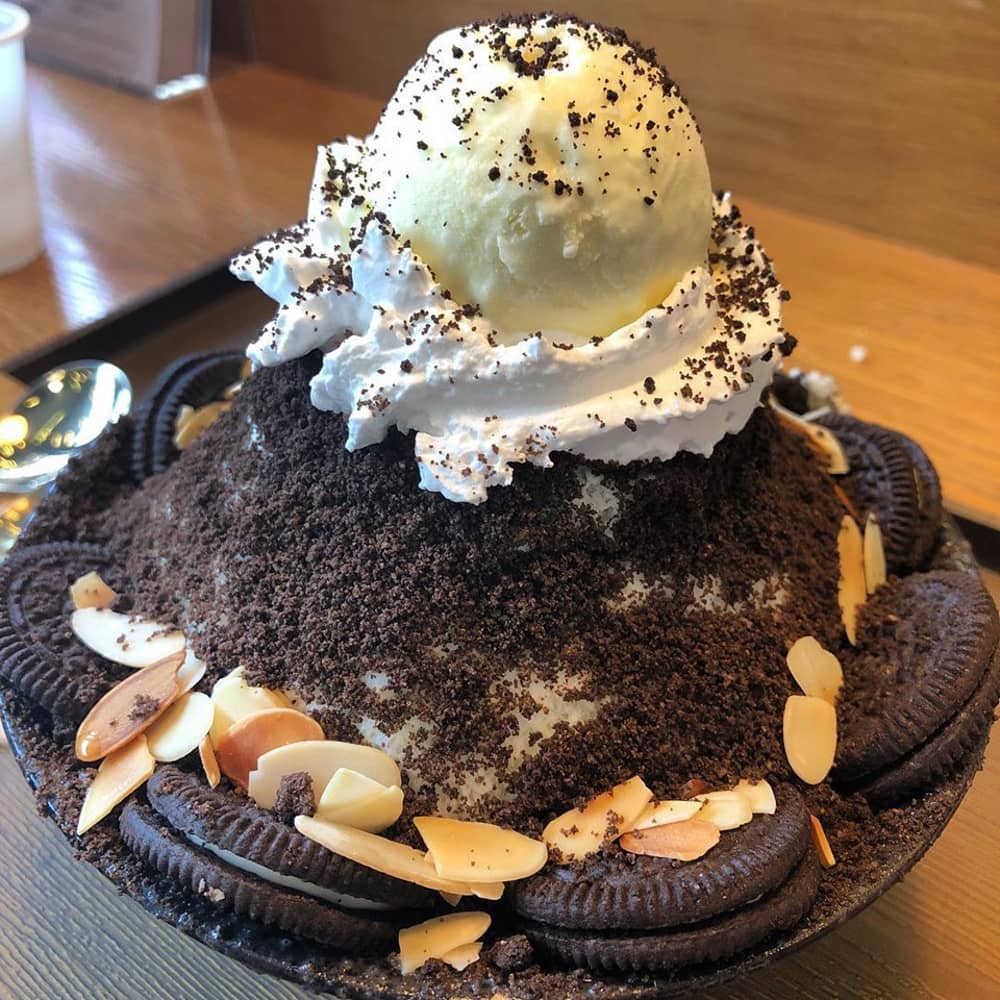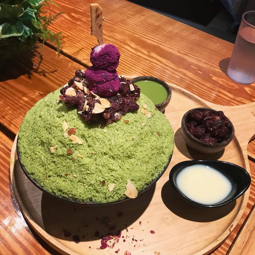Bingsu: Bingsu là món tráng miệng nổi tiếng trong giới trẻ Hàn với thành phần chính là kem tuyết đá bào gây tê đầu lưỡi người ăn. Dựa trên hương vị cơ bản ban đầu, người ta bắt đầu chế biến thành nhiều loại đa dạng như Bingsu chocolate, Bingsu trái cây, Bingsu trà xanh, Bingsu đậu đỏ, Bingsu dưa hấu… Ảnh: @eatadakimatcha.