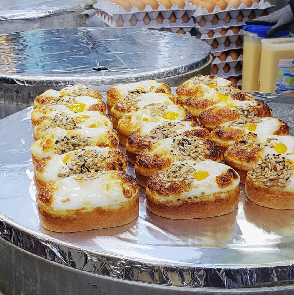 Bánh mì trứng Gyeran Bbang: Bánh mì trứng Gyeran Bbang cũng là món ăn ưa thích của người Hàn Quốc. Khác với bánh mì trứng truyền thống của Việt Nam, loại bánh này ít ngọt, vỏ mềm mịn hơi ẩm và thơm lừng với một quả trứng, phô mai béo ngậy ẩn chứa bên trong bánh. Khi ăn loại bánh này, bạn có thể cảm nhận được sự tương đồng với loại bánh trứng custard orion nổi tiếng. Ảnh: @andrewchungle, @noceur_ram.