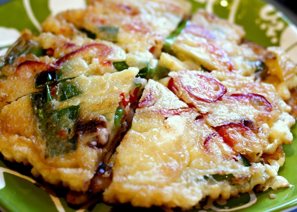 Khi ăn Bulgogi, người thường gói nó vào rau diếp, lá vừng hay các lá khác và cách ăn này mang lại vị giác chân thực hơn và nhiều dinh dưỡng hơn là chỉ ăn Bulgogi không. Vì những lý do này, món Bulgogi mang đầy đủ chất dinh dưỡng và rất ngon miệng.10. Seafood pajeon – Hành trộn hải sản tẩm bột rán