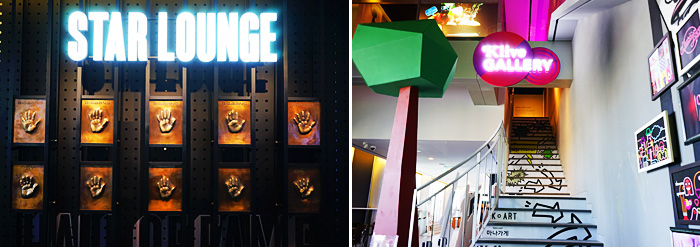 Rất nhiều người nổi tiếng đứng tại các góc khác nhau và cười khi chụp ảnh cùng bạn. Sau khi chụp ảnh xong hãy dừng chân tại khu vực triển lãm STAR LOUNGE và Klive GALLERY. STAR LOUNGE có chữ ký và dấu vân tay của các ngôi sao còn Klive GALLERY trưng bày các tác phẩm nghệ thuật và trình chiếu 3D hòa nhạc "Comic Maple Story".