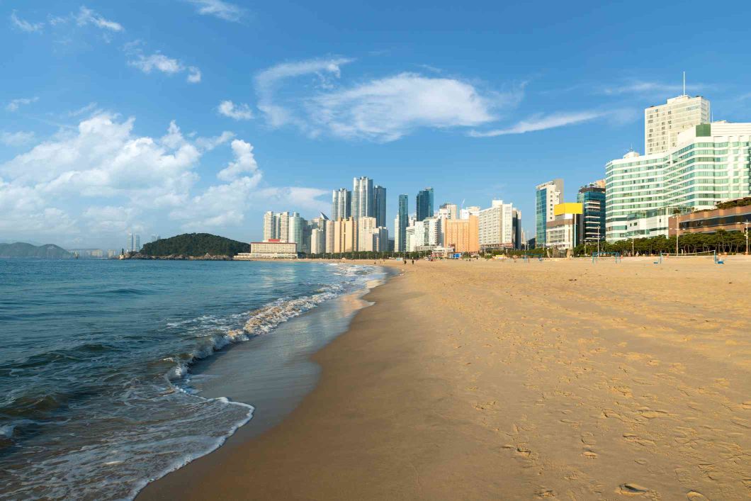 Bãi biển Haeundae là một trong những bãi cát nổi tiếng nhất của Hàn Quốc. Bãi biển cát trắng dài gần 1,5 km chỉ cách ga Busan 40 phút đi tàu và cách sân bay quốc tế gần nhất một giờ đồng hồ. Bãi biển này có một bờ biển rộng và vịnh nông, là địa điểm lý tưởng để bơi lội hoặc tắm nắng.
