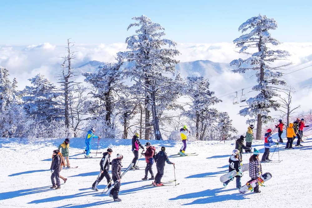 Khu trượt tuyết cũng đồng thời là khu vực ngắm cảnh. Từ trên cao, bạn có thể thấy mùa đông trên những đỉnh núi của Hàn Quốc.