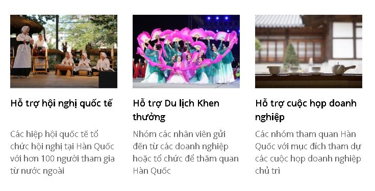 Cục xúc tiến du lịch MICE Hàn Quốc cung cấp cho các Tổ chức và doanh nghiệp nhiều hỗ trợ đầy hấp dẫn với tính tùy biến cao để tổ chức thành công các cuộc họp quốc tế hay các sự kiện kinh doanh tại Hàn Quốc.