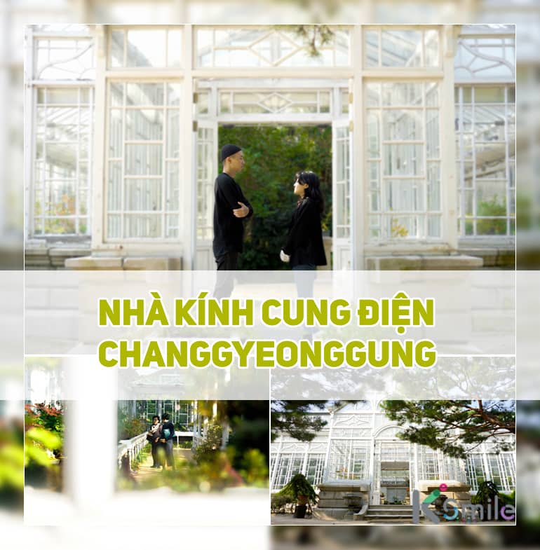 Ảnh: Một cặp đôi chụp ảnh với Nhà kính Cung điện Changgyeonggung (ảnh phía trên)/Cảnh bên trong nhà kính (ảnh phía dưới bên trái)/Cảnh bên ngoài nhà kính (ảnh phía dưới bên phải)