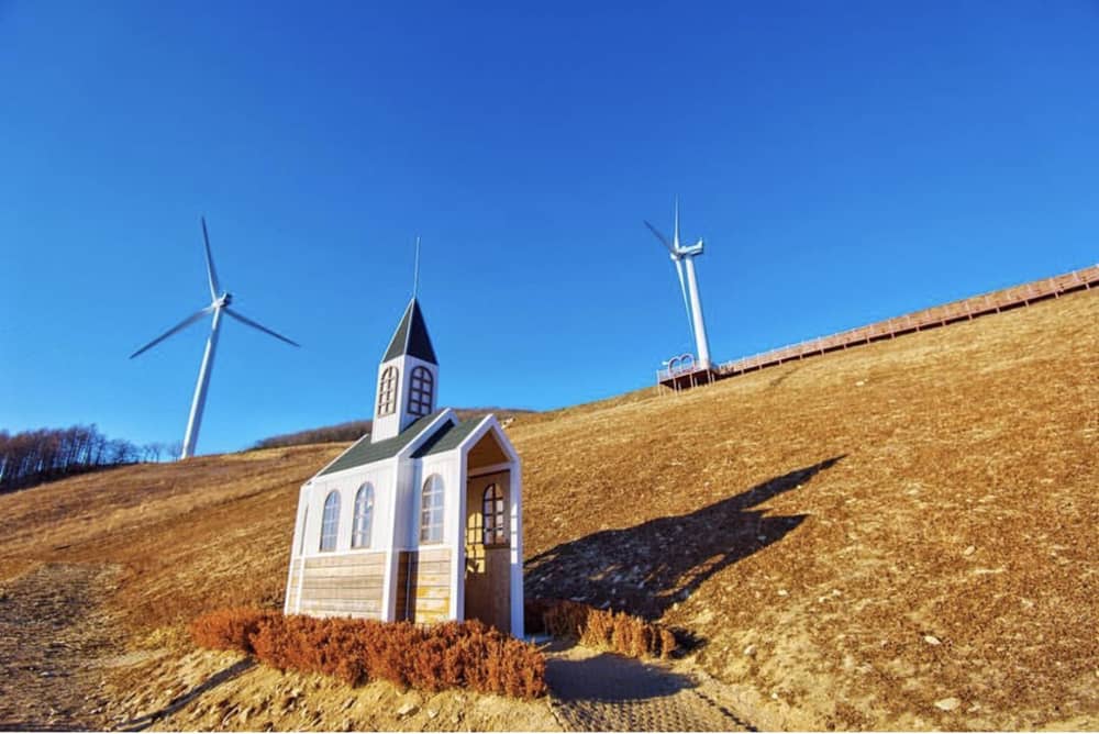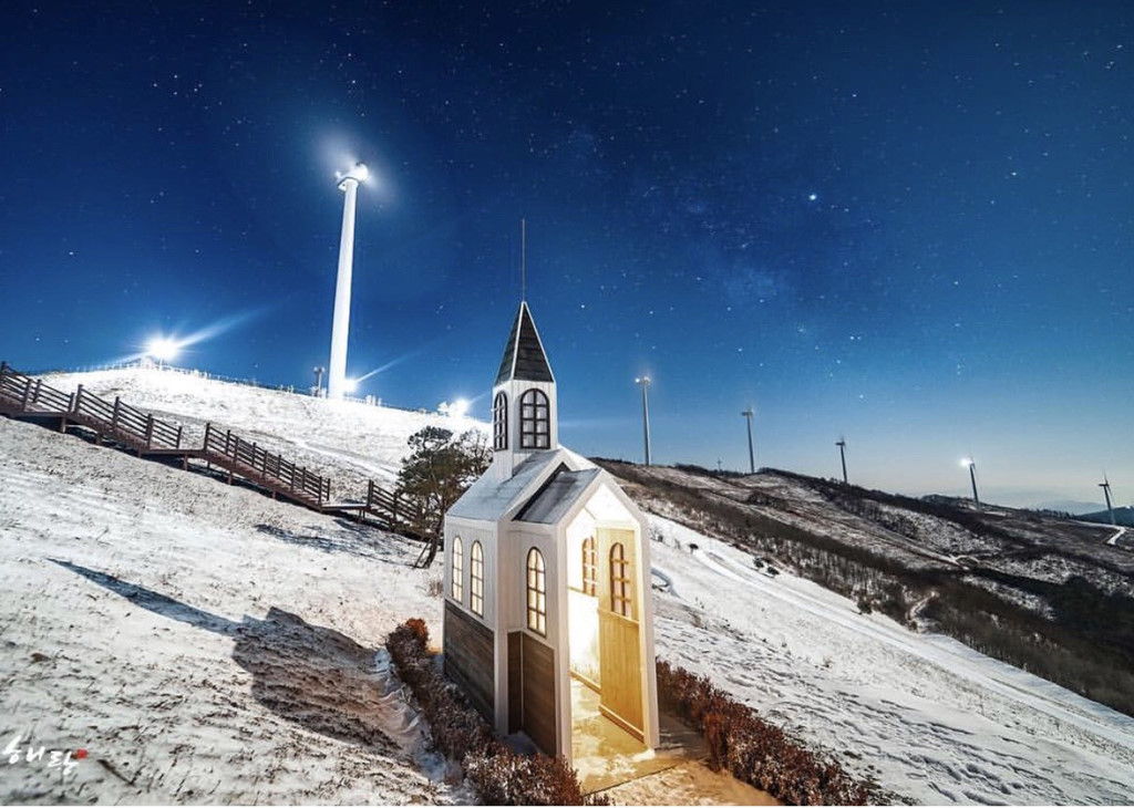 Ngọn đồi cối xay gió cách trung tâm thủ đô Seoul hơn 100 km ở Cheongoksan (Gangwon-do). Nếu đi từ ga tàu Seoul, bạn cần 2 giờ di chuyển. Đây là một trong những điểm check-in được các bạn trẻ Hàn yêu thích trên mạng xã hội Instagram. Ảnh: He._.ej.