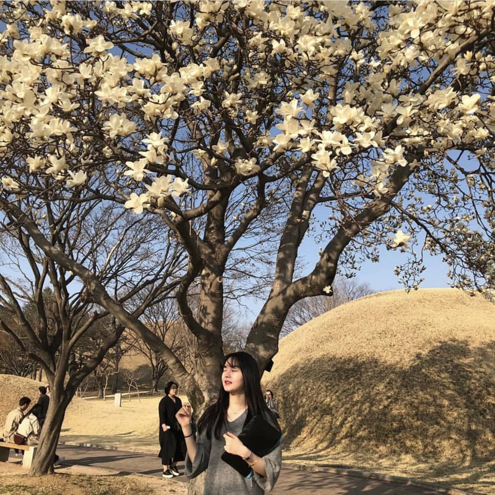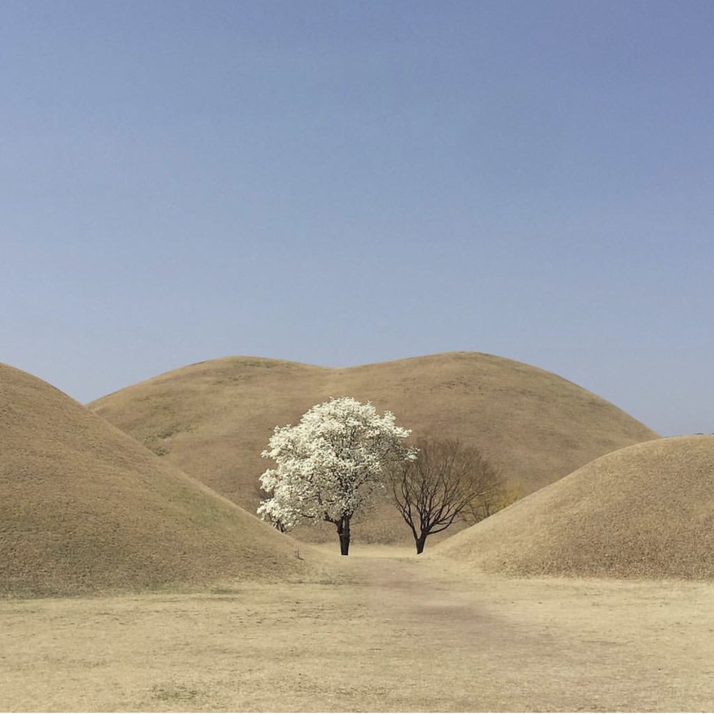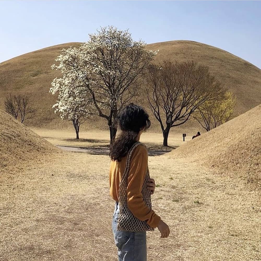 Khu lăng mộ cổ hoàng gia Daereungwon (Gyeongsangbuk-do) là khu di tích quốc gia và bảo tàng lịch sử. Vào mùa thu, không gian nơi đây bao trùm bởi màu vàng, lãng mạn khác xa với tưởng tượng về một khu di tích lịch sử. Ảnh: S.mmmmi_i, Sajeokinbookshop.