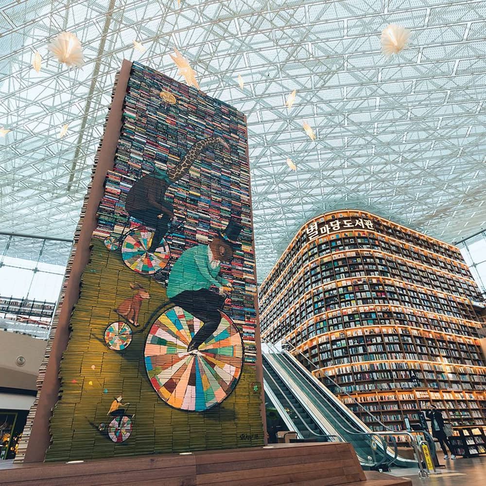 Điều khác biệt của trung tâm thương mại này chính là khu vực thư viện khổng lồ mở cửa miễn phí, phục vụ nhu cầu đọc của mọi đối tượng. Thư viện có tên Starfield, được đưa vào hoạt động chính thức từ tháng 5/2017. Nơi đây nhanh chóng trở thành điểm check-in nổi như cồn của xứ kim chi.