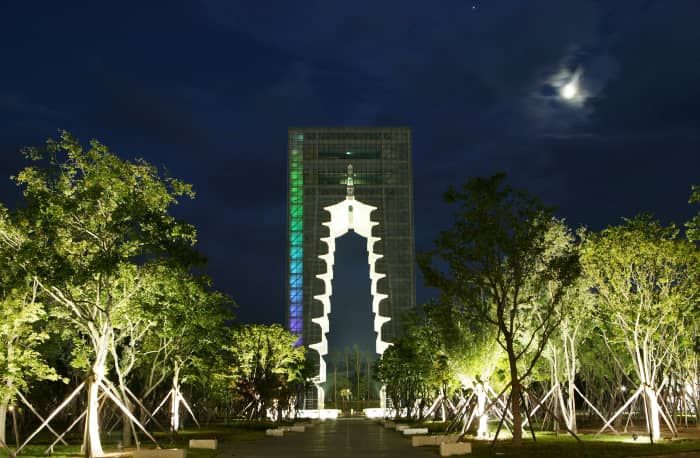Ảnh: Cảnh đêm của tòa tháp Gyeongju (Hình ảnh được cung cấp bởi Công viên Triển lãm Văn hóa Thế giới Gyeongju)