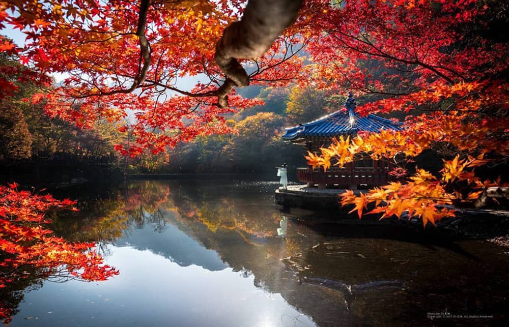 Công viên Quốc gia Naejangsan: Công viên Naejangsan là một trong những địa điểm ngắm lá thu phổ biến của người dân Hàn Quốc và du khách. Nơi đây nổi tiếng với những tán lá đỏ thắm sống động, cây hạt dẻ 600 năm tuổi và thác nước hùng vĩ.