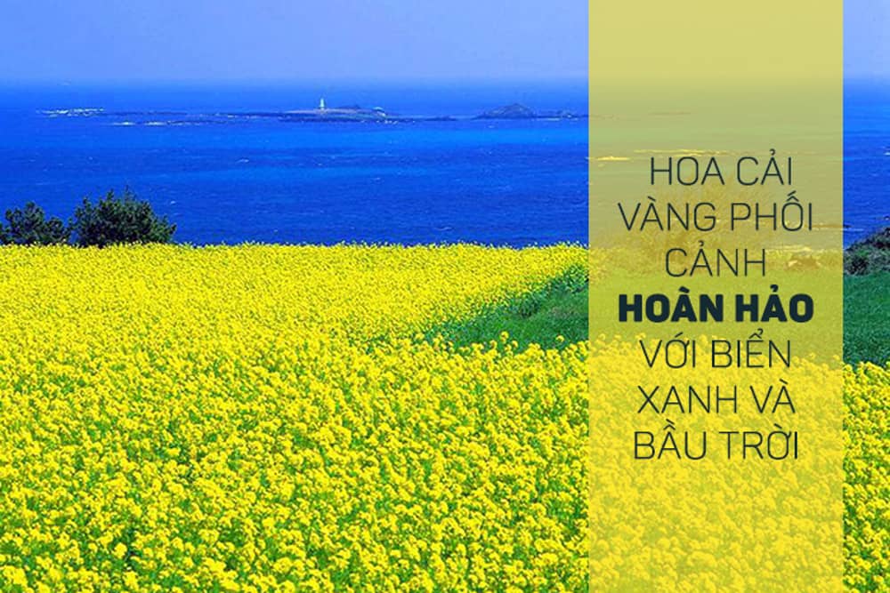 Là tỉnh cực nam của Hàn Quốc, đảo Jeju là nơi đầu tiên ta có thể thấy những bông hoa xuân rực nở, đánh dấu sự khởi đầu của mùa xuân trong các du khách. Những bông hoa cải vàng nở rộ trải rộng khắp cả hòn đảo, tạo nên bức tranh phong cảnh hoàn mĩ, điển hình như tại địa điểm quay phim nổi tiếng Seopjikoji trong bộ drama Hàn Quốc “All In” (2003). Du khách sẽ vô cùng thích thú nếu nhìn thấy những bức tượng điêu khắc độc đáo được xếp đặt trên cánh đồng hoa cải. Không chỉ vậy, một số địa điểm du lịch còn cung cấp dịch vụ cưỡi ngựa, một dịch vụ vô cùng nổi tiếng trong các gia đình và trẻ nhỏ.