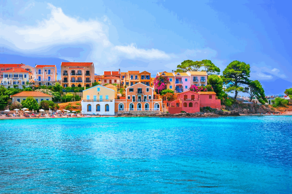 Hòn đảo Kefalonia với các ngôi nhà nhiều sắc màu.