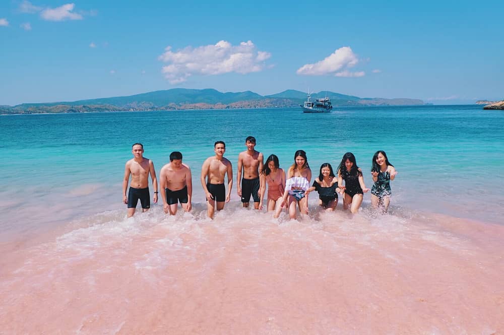 Với nước biển trong vắt và nền cát màu hồng giúp du khách thoải mái tham quan và có một góc chụp thật đẹp để ghi được những bức hình “đáng để đời”.