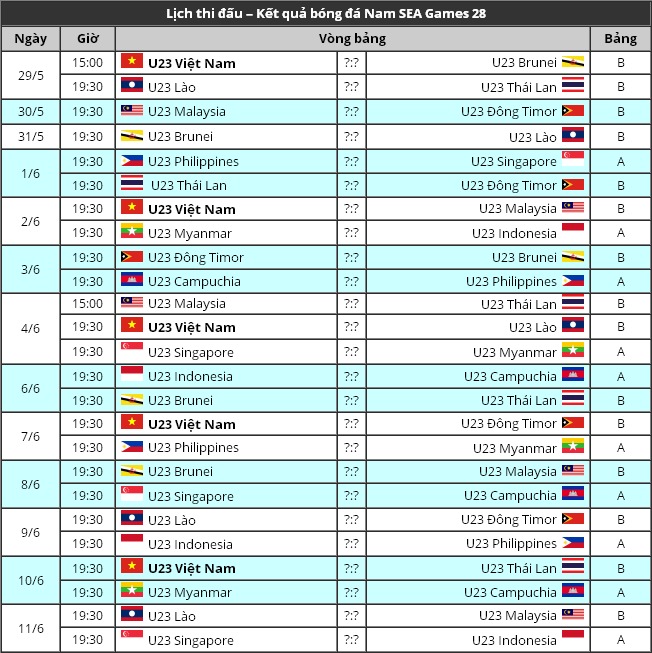 Việt Nam vs Đông Timor 7/6 Việt Nam vs Thái Lan 10/6