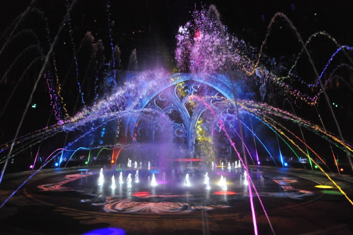 Một trong những điểm nổi bật của chương trình là cảnh khiêu vũ dưới nước, khi nước bay lên cùng nhịp điệu với nhạc. Khung cảnh được thực hiện nhờ 258 vòi phun nước được chiếu sáng rực rỡ bằng đèn LED.