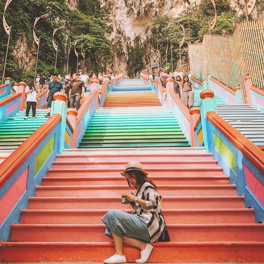 Cầu thang 7 sắc cầu vồng đẹp như thiên đường ở động Batu, Malaysia chính là địa điểm check-in mới được giới trẻ ưa thích (@taramilktea)