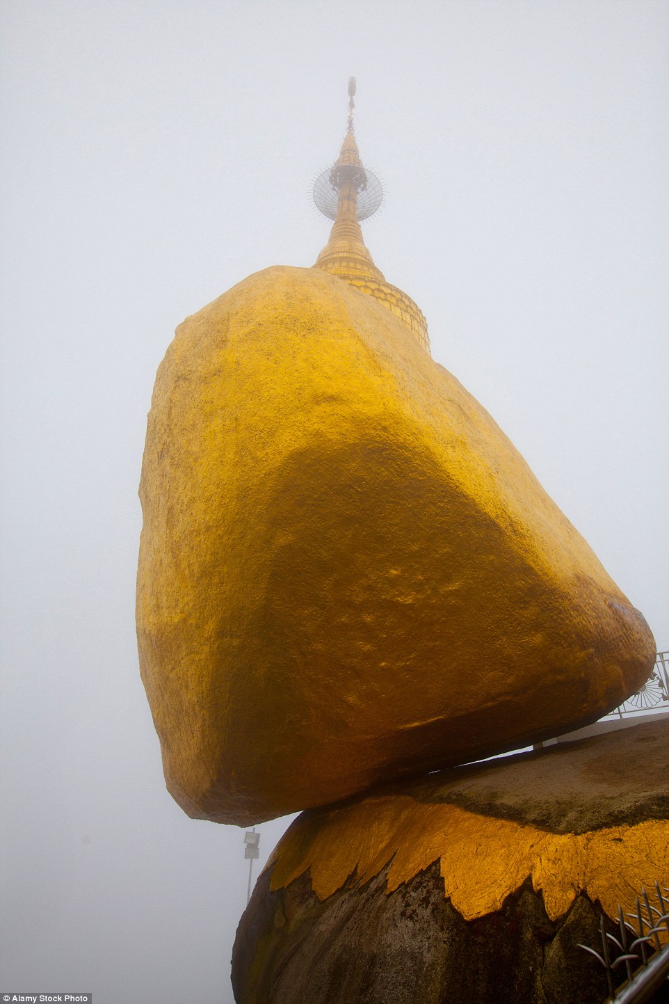 Hòn đá này có tên là Golden rock, nhìn từ xa trông nó như đang sắp rơi xuống, nhưng nó vẫn đứng vững suốt hàng nghìn năm qua. Điều đáng nói là điểm tiếp xúc với hòn đá chỉ vỏn vẹn có 78cm, trong khi hòn đá thì cao gần 7m với kích thước rất to.