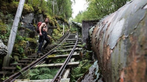 Những bậc thang gỗ dốc đứng này trước vốn là con đường sắt nhỏ, phục vụ việc vận chuyển hàng hóa lên xuống núi. Ngay bên cạnh đó là đường ống nước của nhà máy thủy điện cũ.