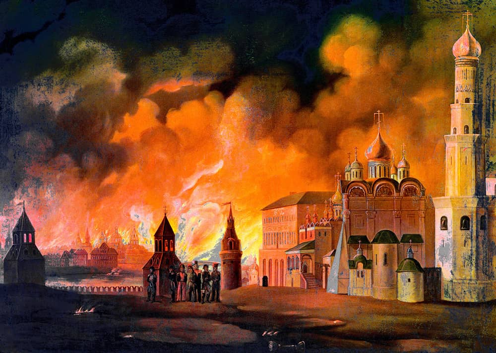 Trong cuộc chiến với Napoléon, Điện Kremlin bị chiếm đóng bởi quân đội Pháp. Trước khi rút lui, Hoàng đế Pháp đã ra lệnh thiêu hủy pháo đài, nhưng mưa lớn và sự phản ứng của người dân địa phương đã phần nào ngăn cản lại ngọn lửa. Dẫu vậy, nhiều tòa nhà vẫn bị hư hại nặng nề.