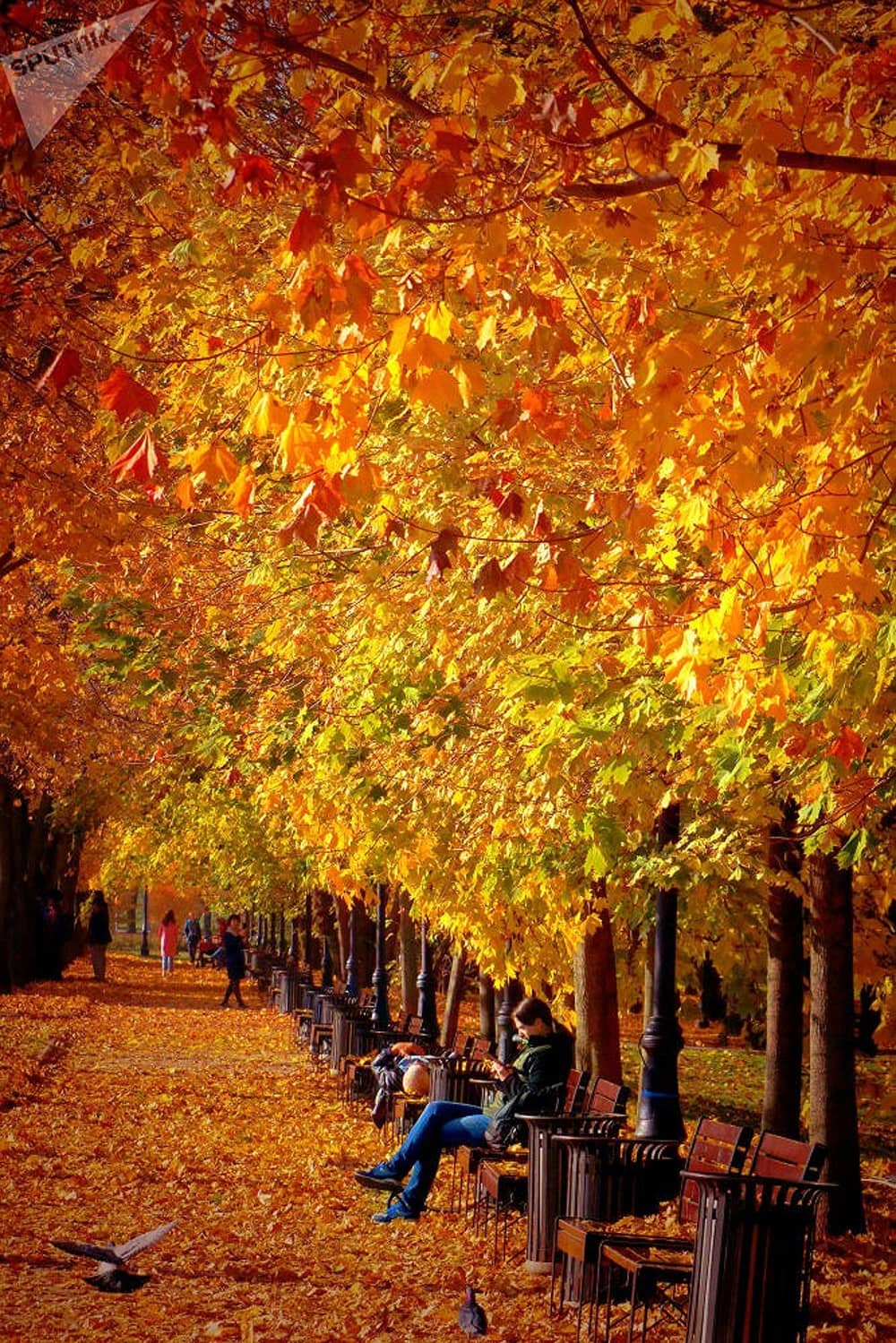 Công viên Neskuchny ở Moscow rực rỡ với những sắc vàng, đỏ đặc trưng của mùa thu. .