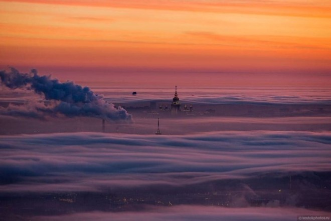 Bức ảnh được chụp từ tháp Ostankino có chiều cao 540 mét. Tháp này được mệnh danh là vẻ đẹp của thủ đô Moscow.