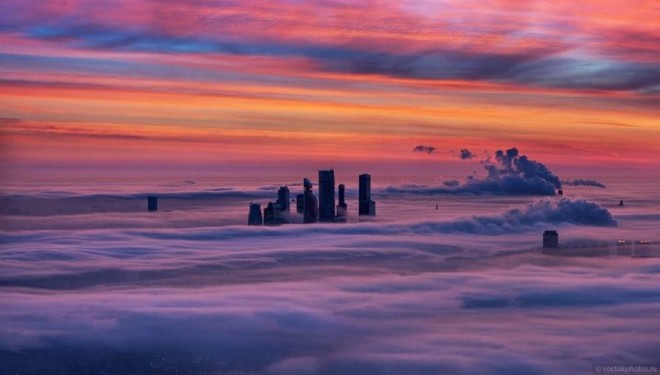 Trung tâm kinh doanh quốc tế - một khu thương mại ở trung tâm thủ đô Moscow “lấp lửng” qua những đám mây.