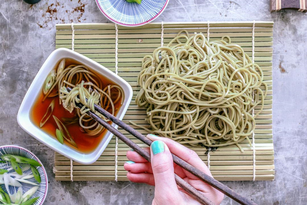 Zaru Soba (soba lạnh): Soba là sợi mì dài, mảnh được làm từ bột kiều mạch, chứa nhiều vitamin, chất xơ và các dưỡng chất khác. Vào mùa hè, người Nhật thường ăn món “zaru soba” - mì soba lạnh chấm với sốt mentsuya. Zaru chính là tên của loại giỏ hay khay tre được dùng để bày mì lạnh.