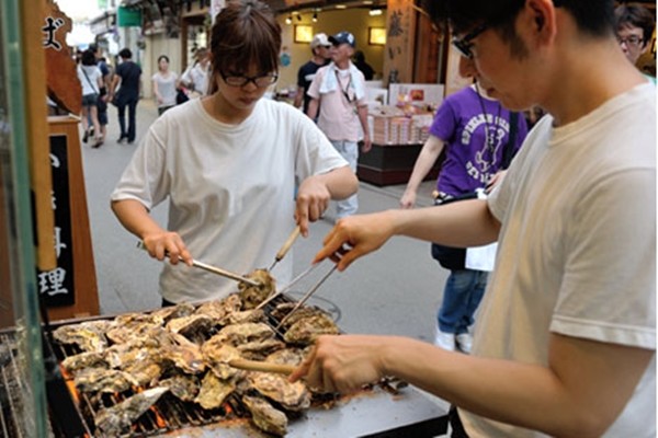Tới Miyajima sau cuộc hành trình một giờ từ Hiroshima, vào tháng Hai lễ hội hàu hàng năm bạn sẽ được thưởng thức những con hàu được bán với giá rất rẻ.