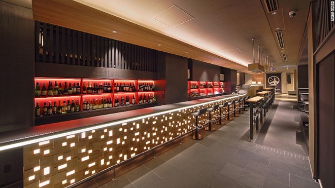 Khu lễ tân khách sạn có quầy bar giống như phòng chờ hạng thương gia ở sân bay.