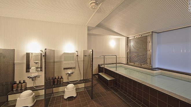Các du khách ở tại đây sẽ sử dụng chung nhà tắm và nhà vệ sinh. Ngoài ra, khách sạn còn có khu tắm công cộng theo kiểu truyền thống Nhật Bản.