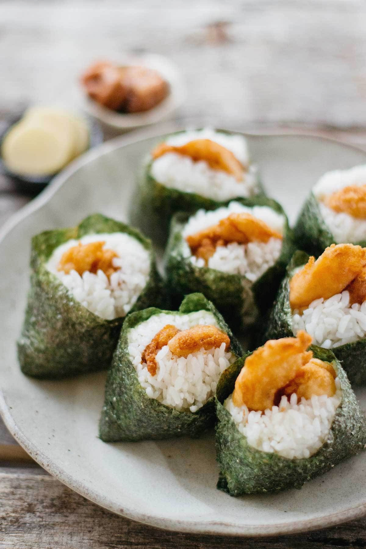 Tenmusu (cơm cuộn rong biển) sẽ thích hợp cho một bữa ăn nhanh khi bạn du lịch đến Nhật Bản. Tenmusu là đặc sản nổi tiếng có nguồn gốc từ thành phố Tsu ở tỉnh Mie. Bạn có thể tìm ăn món này ở Tenmusu tại Meibutsu Tenmusu Senju khu vực Osu của Nagoya. Ngoài ẩm thực, Nagoya còn rất nhiều địa danh nổi tiếng thu hút du khách như lâu đài Nagoya, bảo tàng ô tô Toyota, đền Asuta và bảo tàng Tokugawaen.