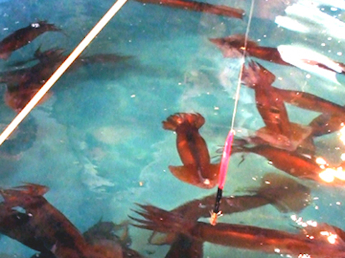 Chợ sáng sớm được ví như thiên đường của các loại hải sản tươi sống. Du khách có thể dễ dàng tìm được món ăn này tại các quầy hàng, nơi người ta để mực bơi lội trong những chậu nước. Việc của bạn là câu lấy một con và thưởng thức ngay tại chỗ.