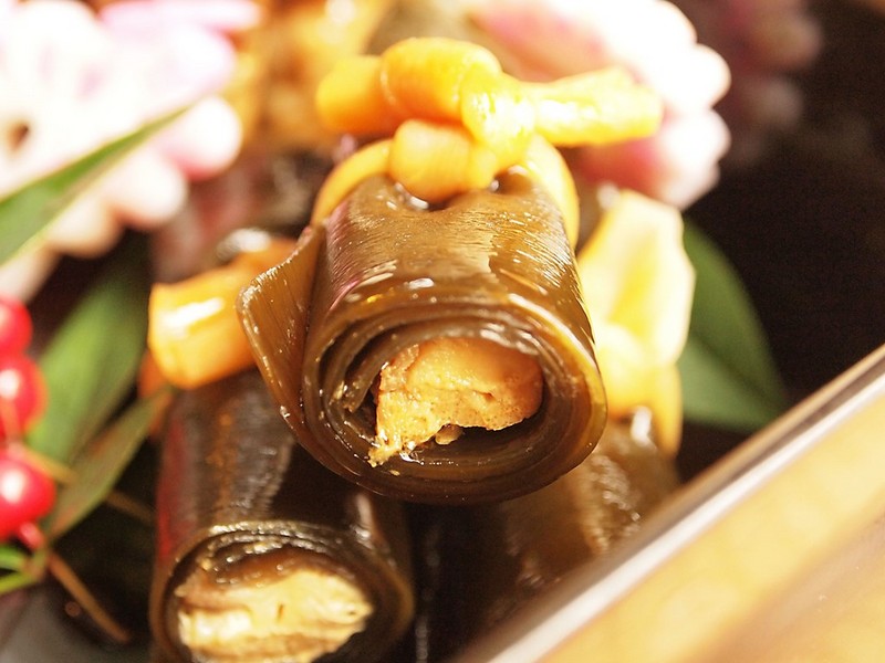 Các món ăn dành riêng cho dịp năm mới được gọi chung là osechi, xếp trong các hộp nhiều ngăn. Trong đó không thể thiếu kobu maki, món tảo cuộn cá hồi thơm ngon.