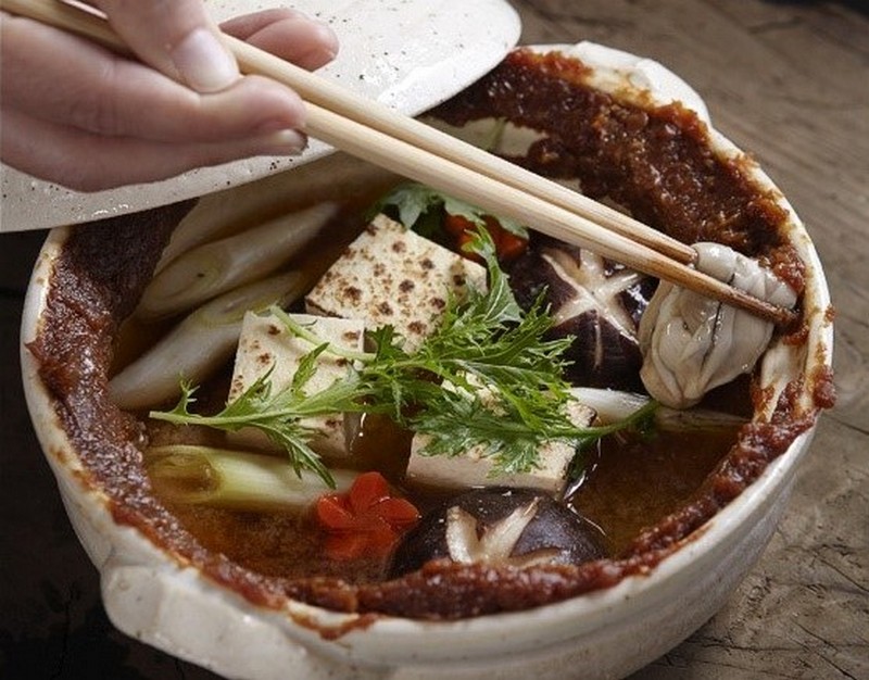 Canh miso được cho vào nồi từng chút một, thêm gia vị và các loại rau củ, đun lửa nhỏ. Hàu được người ăn nhúng vào cho tới khi chín tái và ăn nóng.