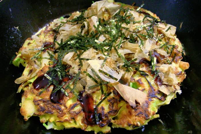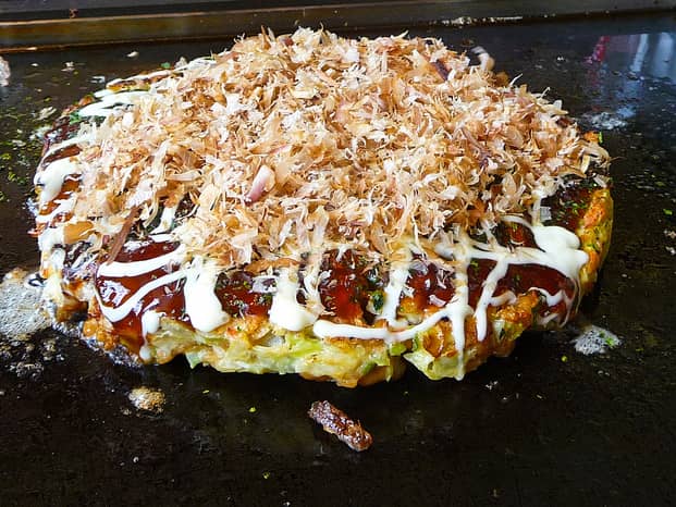 Okonomiyaki là tên gọi của món bánh xèo hấp dẫn này. Okonomiyaki được đọc là (o-konomi-yaki) là một loại bánh mặn áp chảo gồm nhiều loại nguyên liệu. Tên của bánh được ghép từ okonomi nghĩa là "thứ bạn thích/muốn", và yaki nghĩa là nấu nướng, được xem là món ăn đặc trưng của ẩm thực vùng Kansai hoặc Hiroshima, nhưng món này có mặt khắp nơi trên đất Nhật. Nguyên liệu làm đế bánh và làm nhân thay đổi tùy từng vùng. Okonomiyaki của Tokyo nhỏ hơn ở Hiroshima và Kansai.