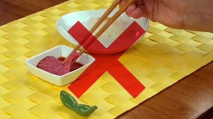 Nhiều thực khách thích nhúng các món có cơm cuộn bên ngoài vào nước tương mà không hề hay biết thói quen đó lại làm lớp cơm bọc bên ngoài nhão ra, đôi khi còn mất đi độ dính vốn có của nó mà rơi vãi trong chén nước chấm. Điều này rất mất thẩm mỹ và khiến nhiều người bản xứ phải ái ngại. Nếu có ăn sushi, hãy tránh chấm thẳng cơm vào nước tương mà lật phần cá lại bạn nhé.