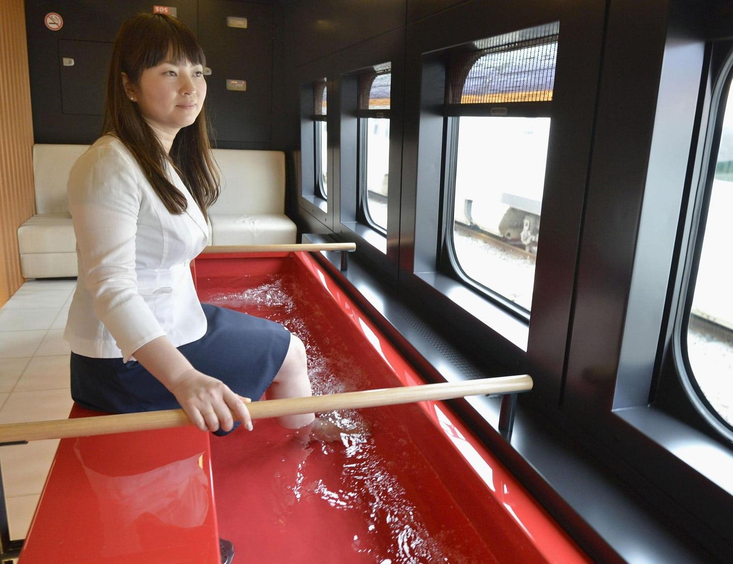 Tàu hỏa ở Nhật còn được trang bị thêm bồn ngâm chân, giúp du khách thư giãn trong suốt hành trình dài.