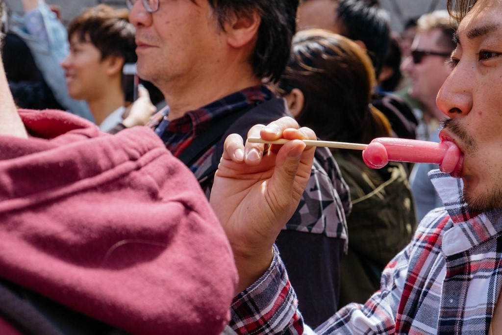 Trong ngày hội Kanamara Matsuri diễn ra, những đồ ăn có hình bộ phận nhạy cảm của nam giới như kẹo mút, kem hay đồ lưu niệm được bày bán khắp đường phố.