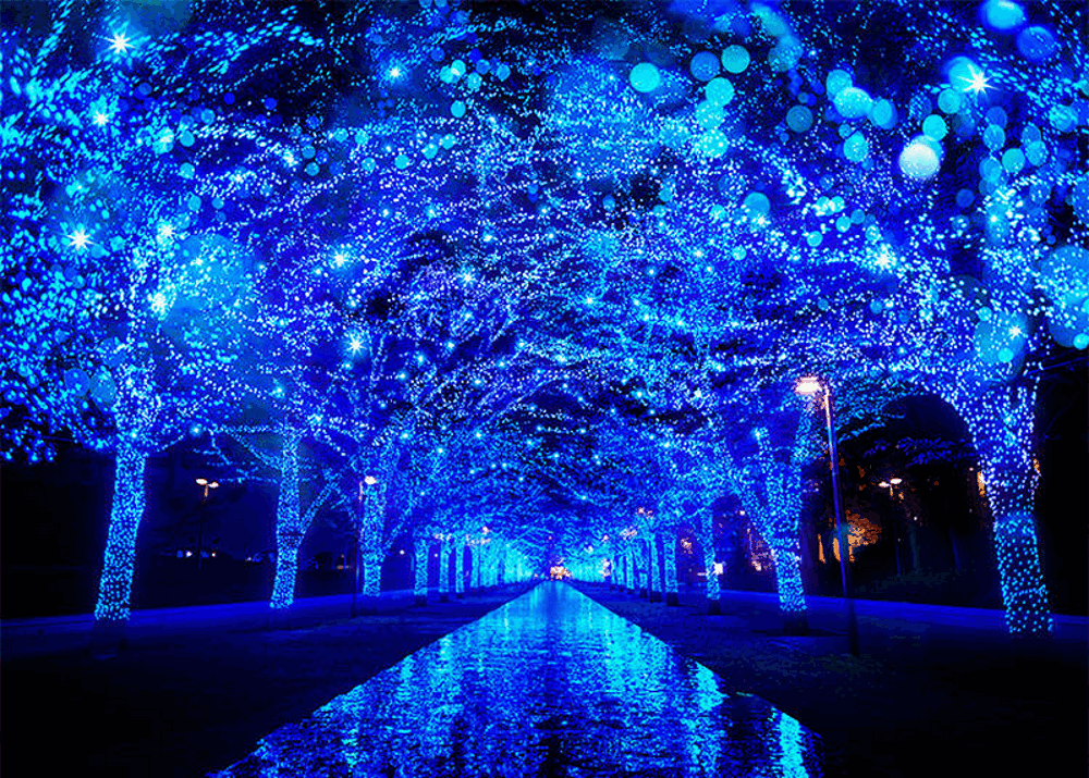 “Hang động xanh Shibuya” là công trình chiếu sáng để tạo nên một hang động ánh sáng xanh tuyệt đẹp. Khi bước qua đường hầm ánh sáng dài khoảng 800m này ở công viên Yoyogi, du khách sẽ ngỡ ngàng và say đắm bởi khoảng 600.000 đèn led xanh nhỏ được thắp sáng rực rỡ. Bạn sẽ ngỡ lạc vào một thế giới hoàn toàn khác của sự bình yến và lãng quên mọi sự hối hả của thành phố phía bên ngoài.