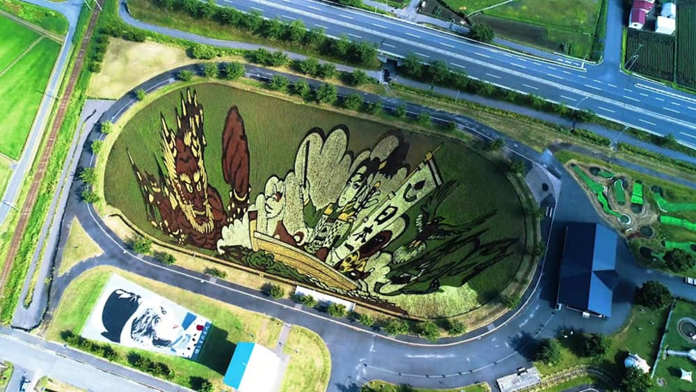 Các tuyệt tác từ lúa được tạo ra ở 2 khu vực trong làng. Cánh đồng bao phủ trên gần 1,5 ha, có chiều dài 143 m, rộng 103 m. Nguồn cảm hứng để sáng tạo là các tác phẩm nghệ thuật tuyệt vời, những nhân vật trong văn hóa dân gian Nhật Bản, hình ảnh từ nhiều bộ phim anime nổi tiếng… Ảnh: CNN Arabic.