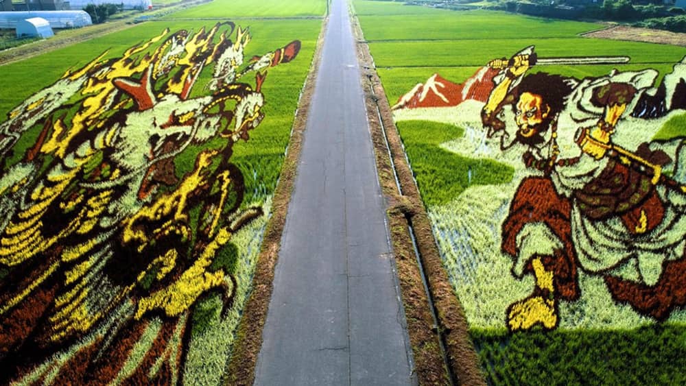 Nghệ thuật trồng lúa là một kỹ thuật độc đáo của Nhật Bản. Để làm nên những tuyệt tác trên cánh đồng, người nông dân cần chọn loại lúa tốt và trồng hạt giống có màu sắc khác nhau. Hình thức nghệ thuật này bắt nguồn vào năm 1993 ở làng Inakadate, tỉnh Aomori, như một phương tiện nhằm phục hồi kinh tế khu vực. Ảnh: Art drawing ideas.