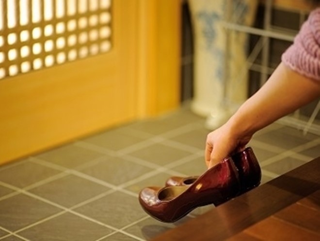 Bạn có thể phải cởi giày khi vào nhà hàng. Ở nhiều nơi, nhân viên phục vụ sẽ nhắc nhở khách hàng để giày bên ngoài. Nhưng nếu không có người nhắc, hãy để ý xung quanh và cách thiết kế của mặt sàn (cao hơn một bậc) khi vừa bước vào bên trong. Ảnh: Ameblo.jp.