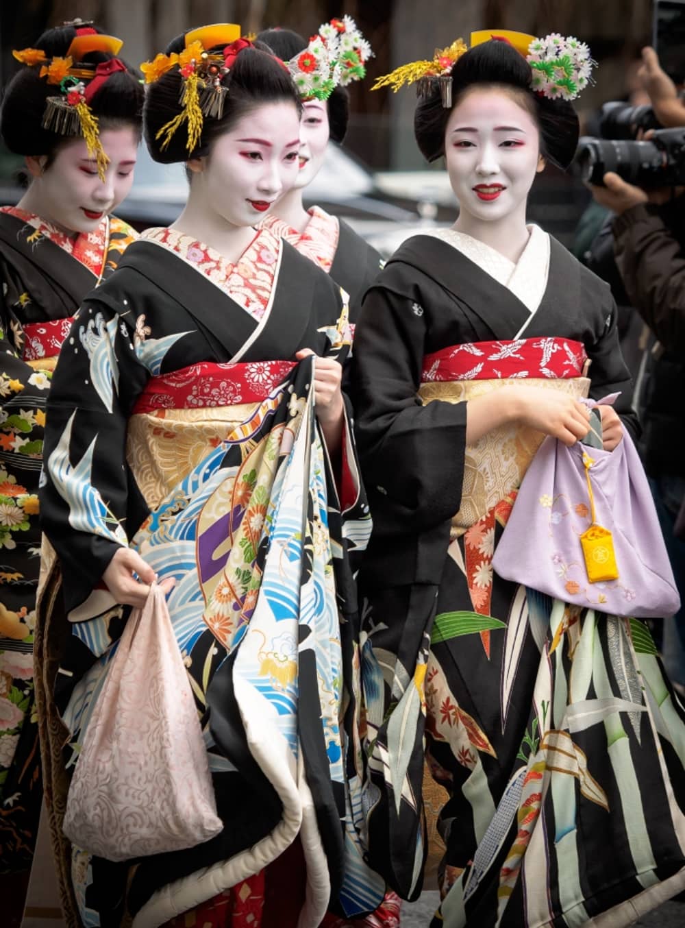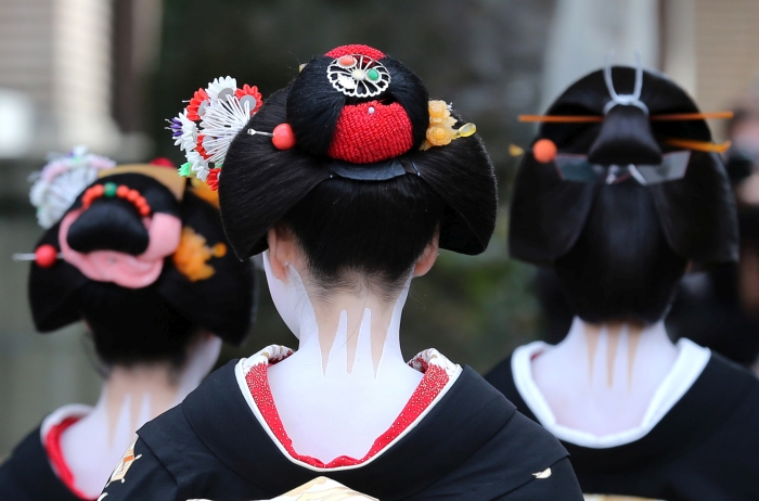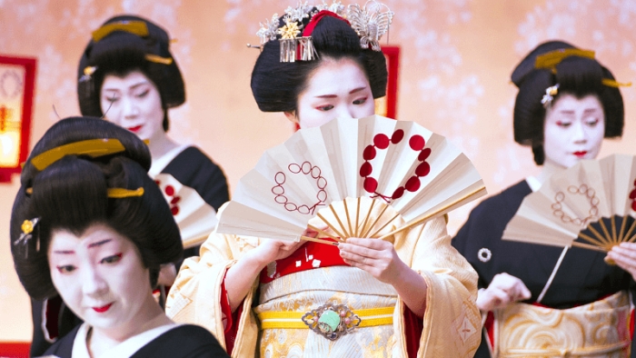 Các maiko biểu diễn điệu múa truyền thống trong một sự kiện đặc biệt ở Kyoto.