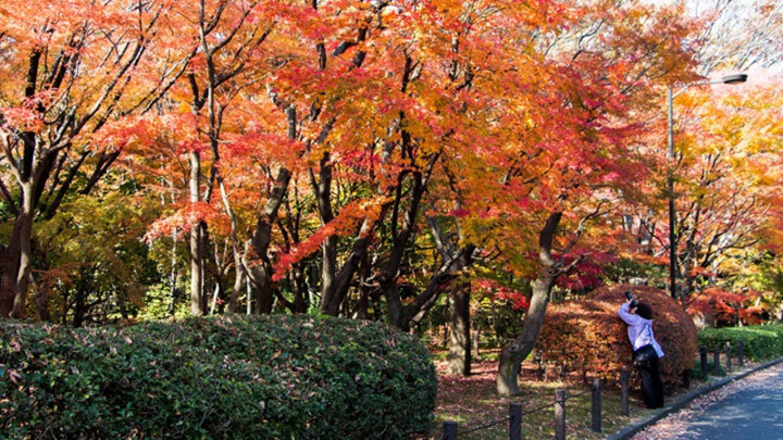 Công viên vườn phía Đông của Hoàng cung Tokyo có hơn 30 loại cây. Vào mùa thu ở Nhật Bản, cây thay lá tạo nên một cảnh tượng đẹp như tranh vẽ.