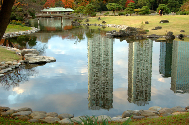 Hamarikyu là một khu vườn thời Edo nằm cạnh Shiodome, một trong những khu thương mại lớn nhất của Tokyo. Mặc dù vườn Hamarikyu nổi tiếng bởi những loài hoa, nhưng vào mùa thu, cây cối ở đây cũng đẹp tuyệt.