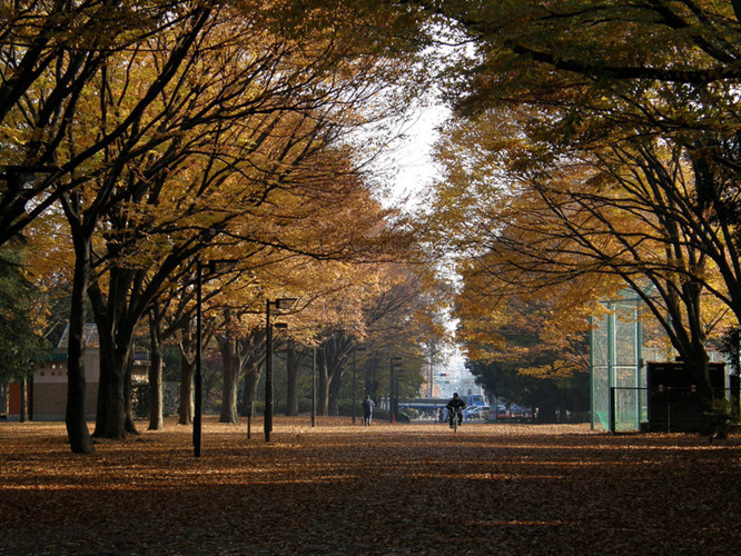 Công viên Yoyogi ở Tokyo phủ đầy lá vàng rụng dưới chân.
