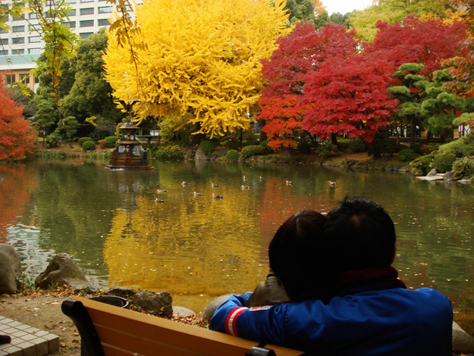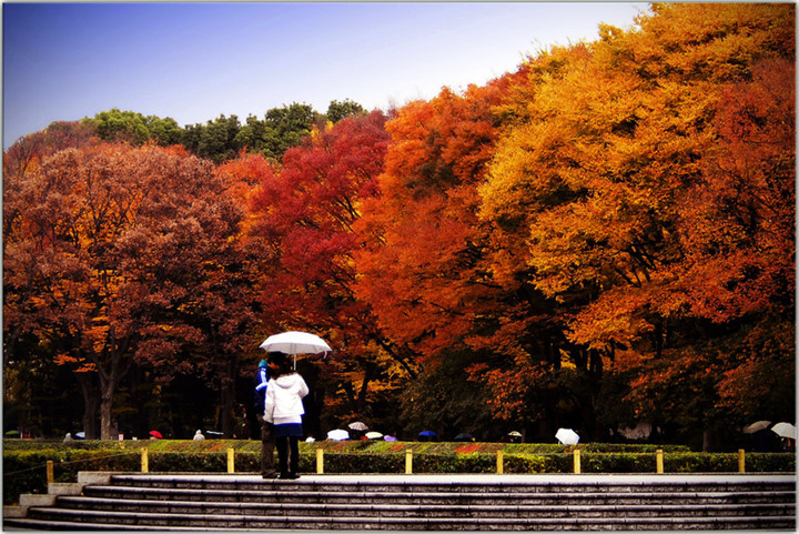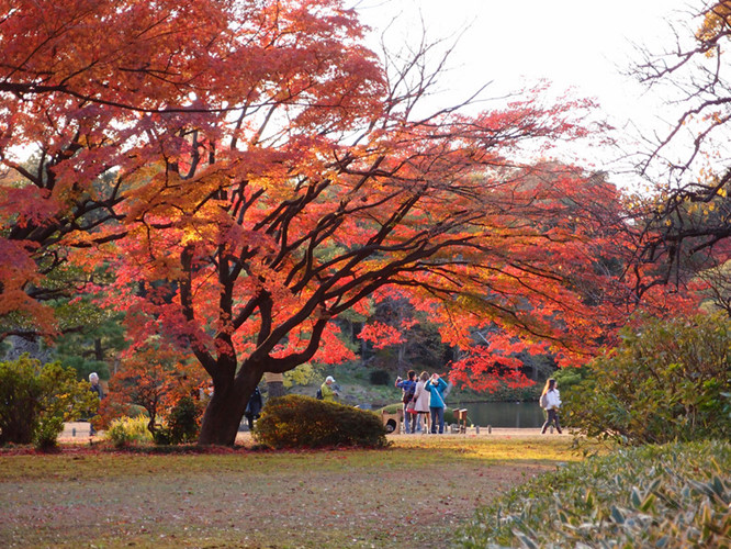 Shinjuku Gyoen là một trong những khu rừng lớn nhất của Tokyo với 20.000 cây được trồng tại đây. Đầu tháng 12, Shinjuku Gyoen phủ kín lá rụng.